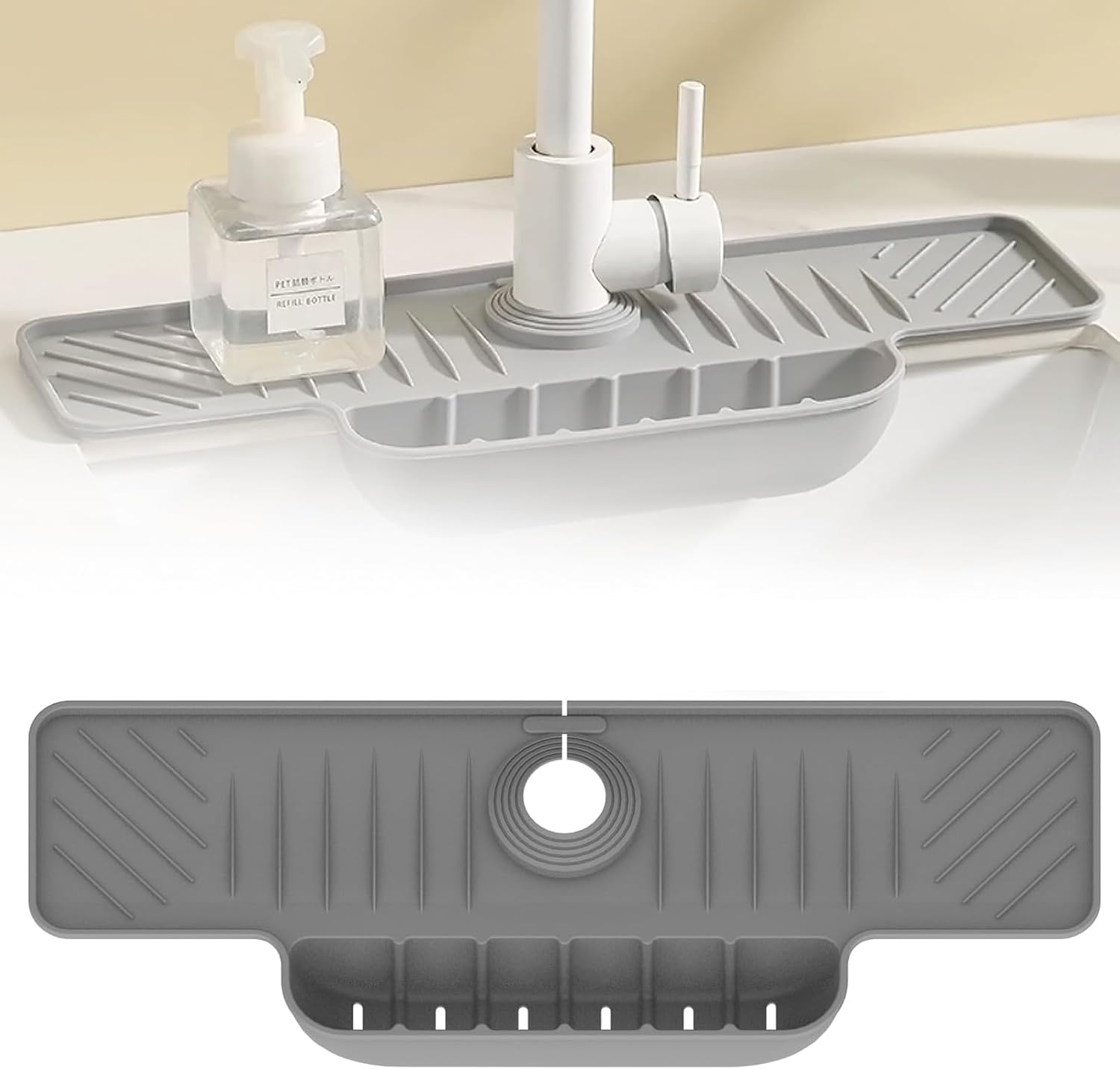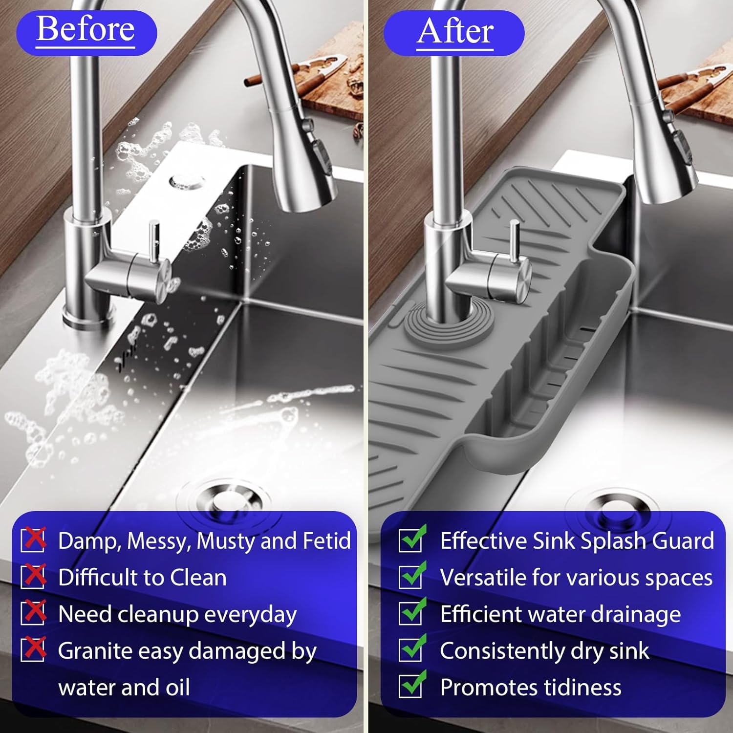- Perfect Kitchen Accessories: Silicone faucets pad new designed for faucet splash with the draining, upgrading your kitchen sink and bathroom countertop in an effort-saving way. The splash guard can be used in various areas for home, kitchen, bathroom, laundry, sink, farmhouse, bar and RV. Making your space organized and tidy