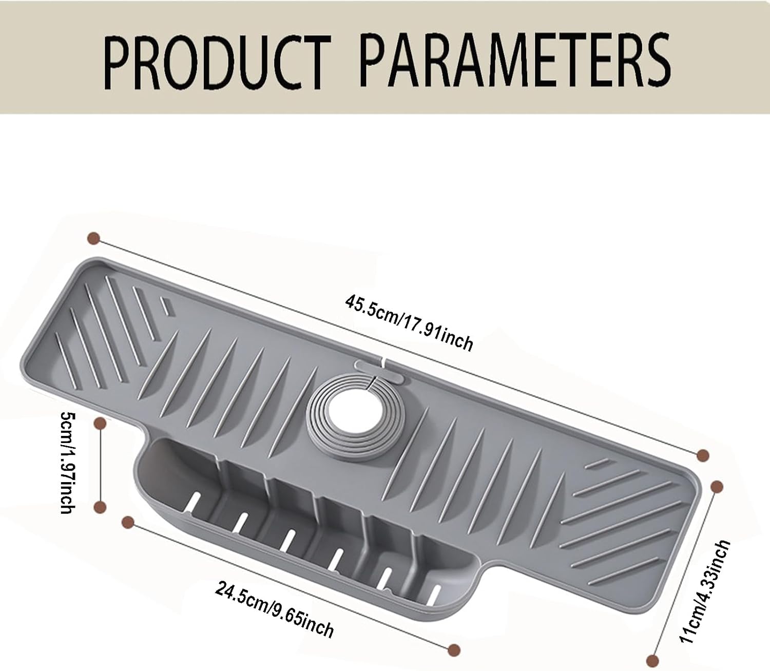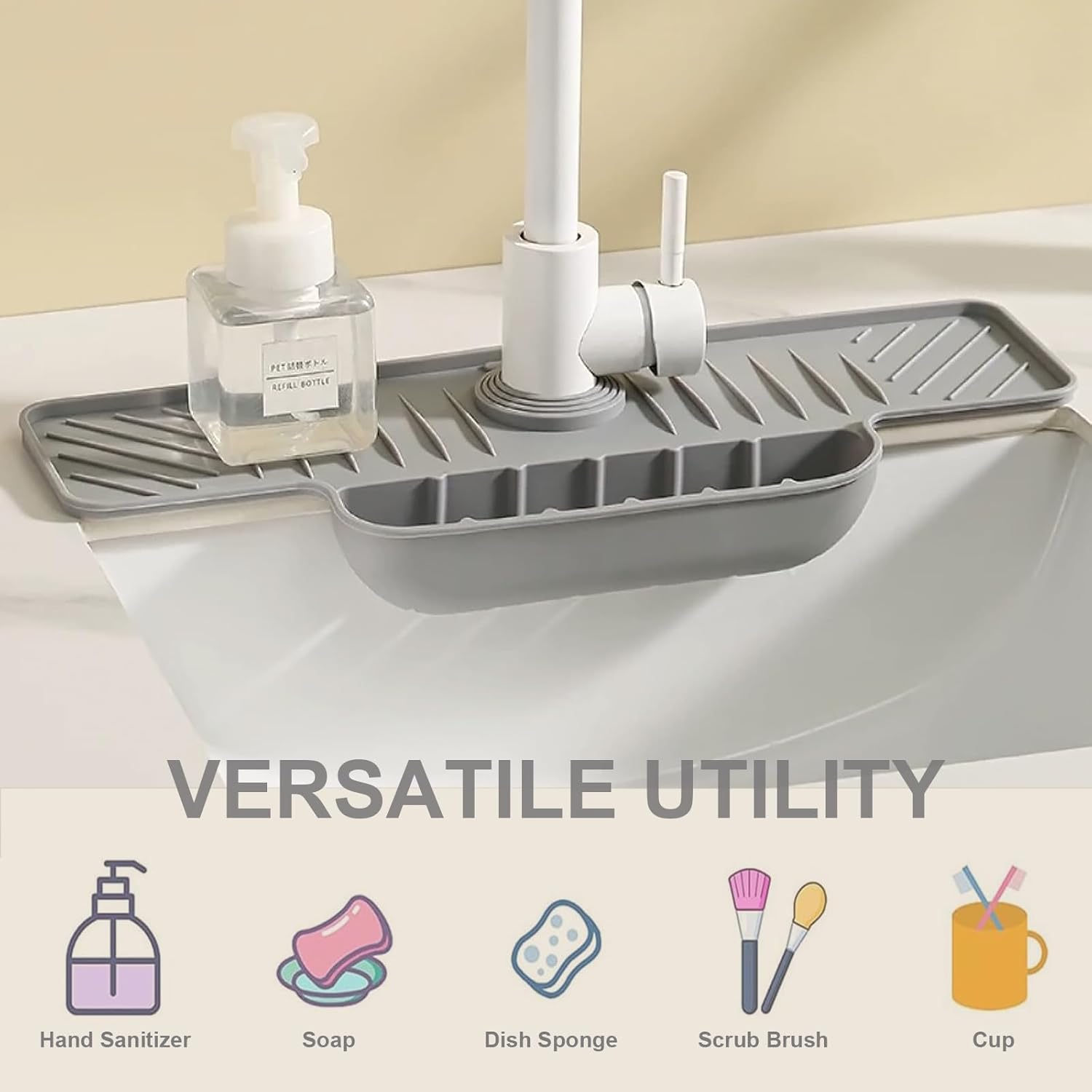 - Kitchen Guard Mat And More Organization: The faucet splash mat has a sponge holder. It's not just only a drying mat, it's also a sponge holder, soap tray, kitchen home organizer. You can put sponge, dish soap, brush and more kitchen supplies on the silicone mat. It keeps your sink area tidy and organized