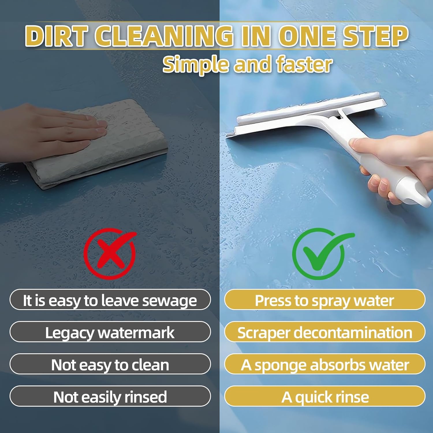 - 3 in 1 Window Cleaning Scraper: This 3-in-1 spray cleaning squeegee combines a spray bottle, silicone squeegee, and sponge cleaner into one, making streak-free cleaning effortless. Whether it's windows, mirrors, tiles, or glass surfaces, it simplifies your cleaning tasks efficiently, suitable for home, car interiors, or kitchens, without the need for any additional tools!
