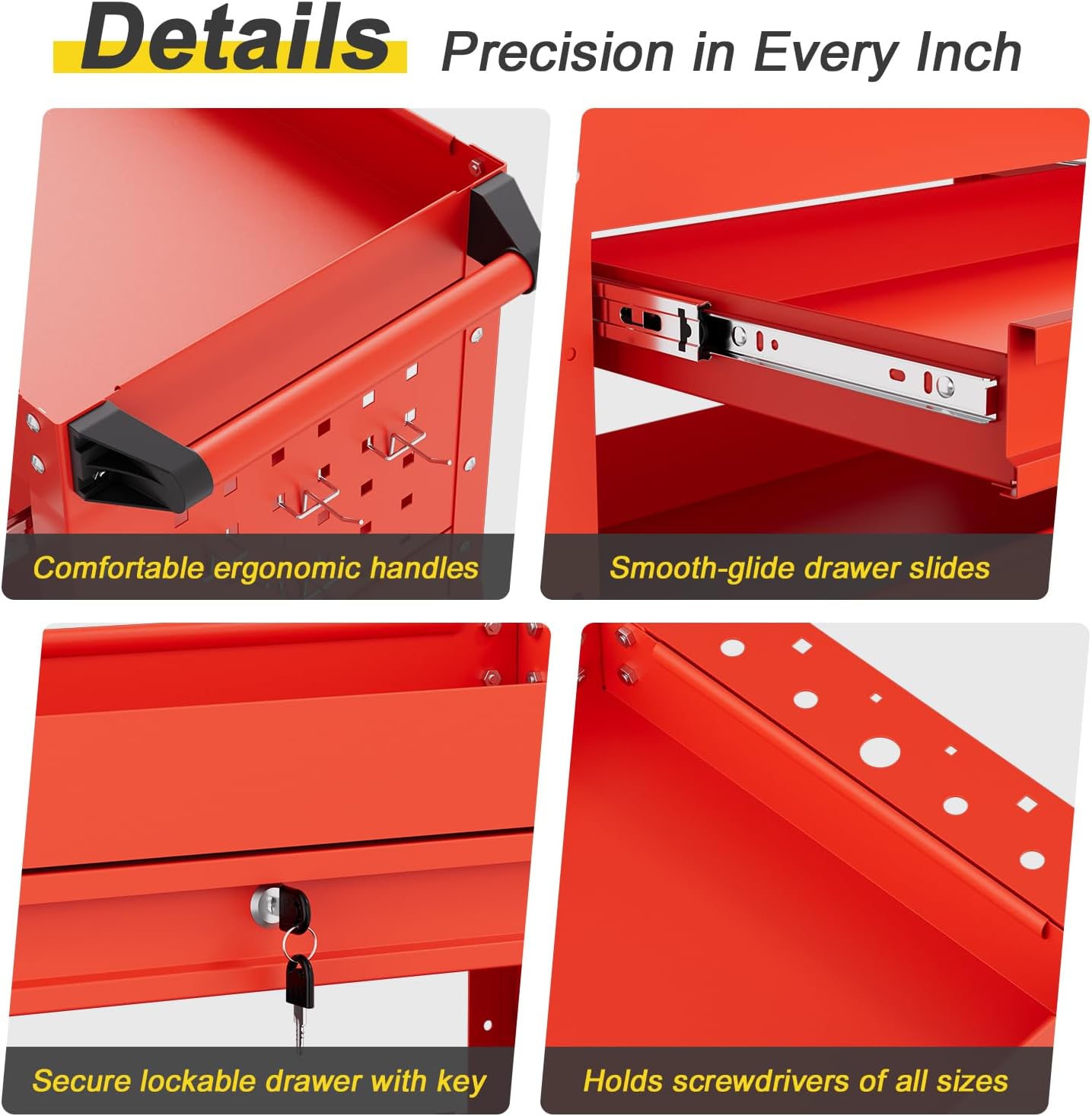 • Easy Mobility & Safety – Rolling utility cart with 4 casters (2 lockable). Smooth, quiet, and stable. Perfect rolling cart with drawers for garage, warehouse, or repair shop.