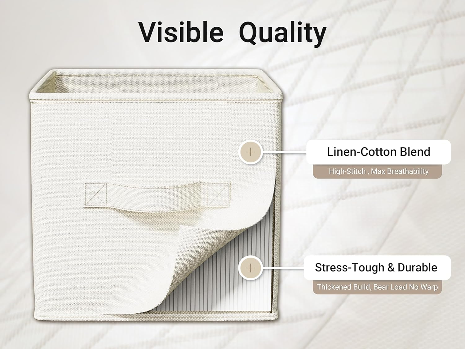 • Premium Linen Material: Crafted from high-quality, odorless linen, these fabric storage bins offer a natural, eco-friendly solution while adding a touch of elegance to your home décor. Durable and breathable, these storage cubes keep your items organized and fresh