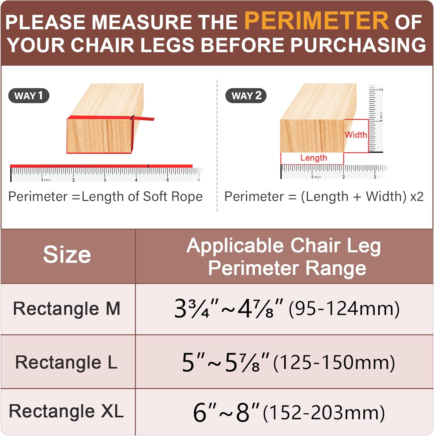 • [Stretchable Fit a Range of Sizes]-Designed with a narrow top and wider bottom, these chair leg caps fit various chair legs sizes. Rectangle XL size fits chair legs with a perimeter of 6'' to 8''(152–203mm).