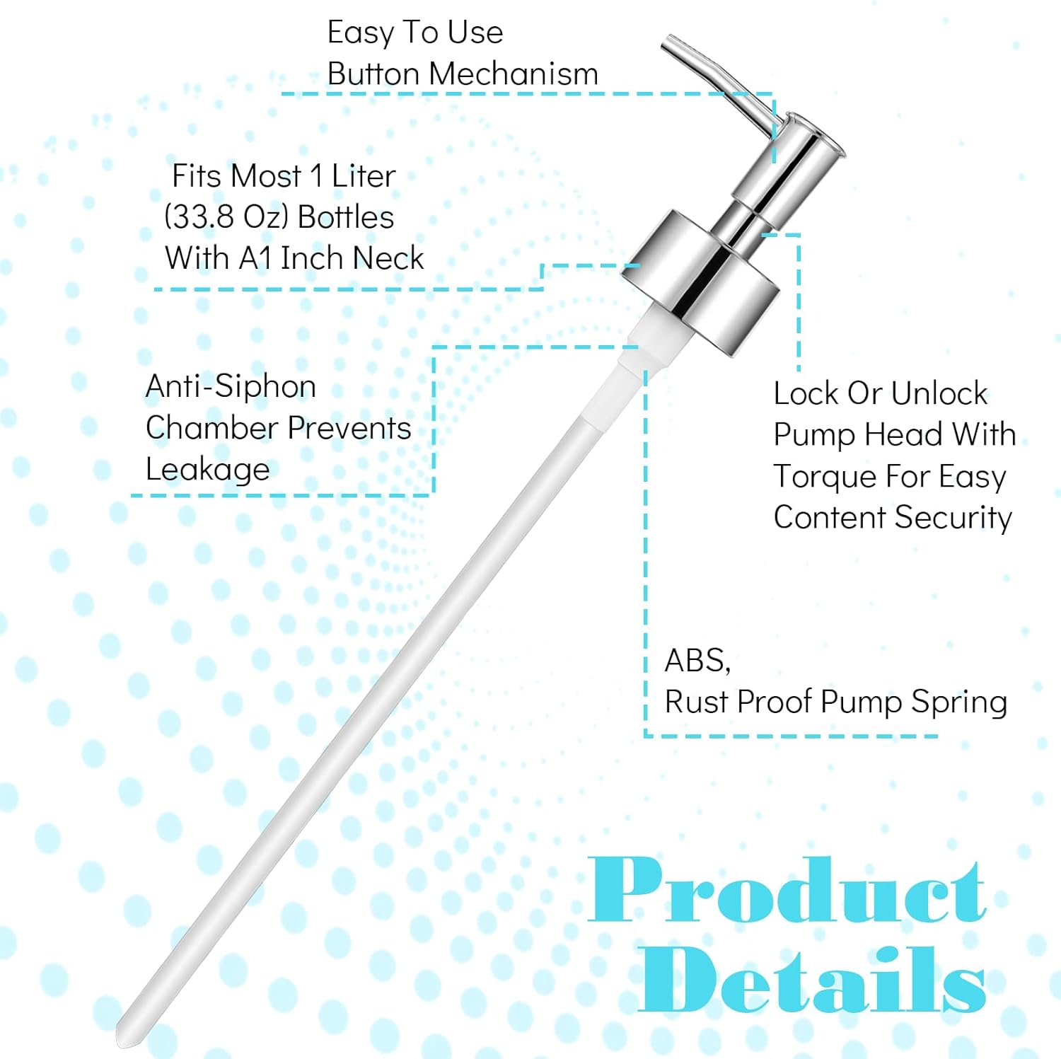 • [Smooth Pumping] This soap dispenser pump features a robust internal spring for smooth and efficient liquid delivery. The silver design complements various bottle colors, enhancing its professional appearance and visual appeal, ensuring an optimal user experience.