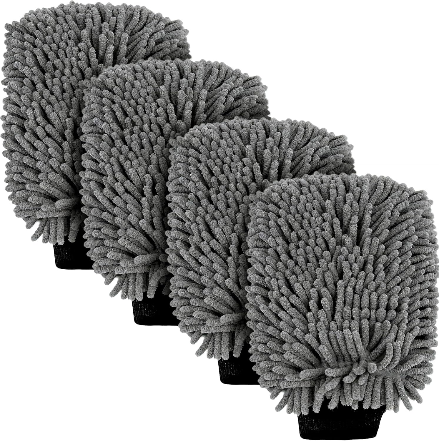 Car Wash Mitt Microfiber, Premium Chenille Microfiber Wash Car Mitts Sponge Scratch Free & Lint-Free, Mitts Waterproof Lining 4 Pack Gray(8''X12'')