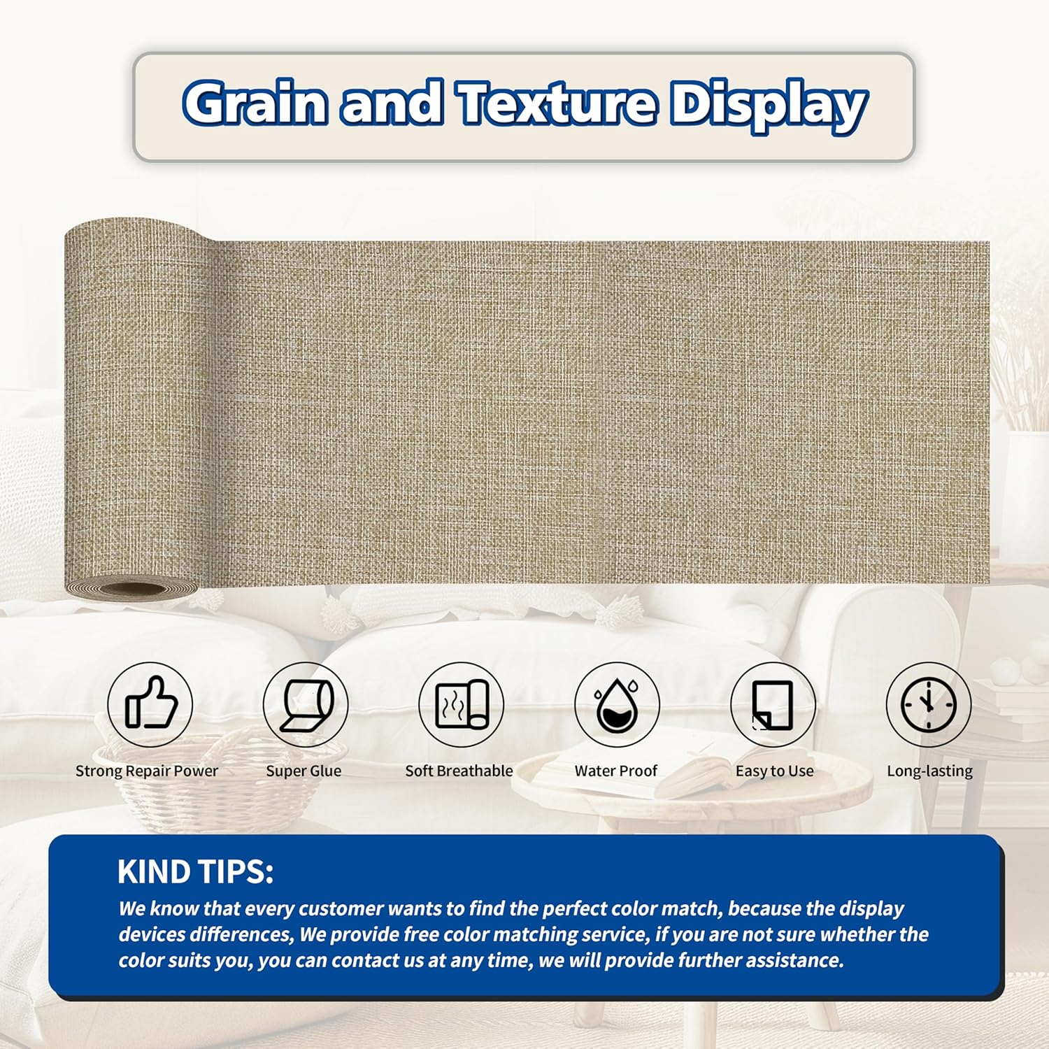 - Easy Application: Clean the damaged area, cut to the appropriate size, peel off the backing paper, and stick it to the damaged area. It only takes a few seconds to complete, and the repair effect is natural and tidy. Suitable for repairing linen products such as sofas, curtains, cushions, furniture, interior decorative fabrics, etc.