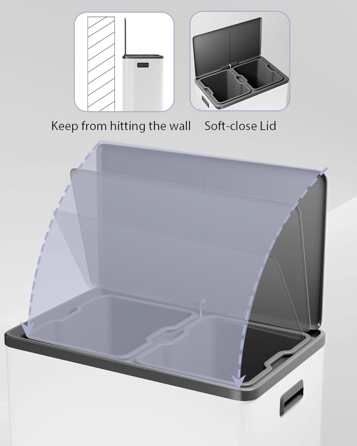 • Effortless Dual Sorting: 2 removable inner buckets (2 x 8 gallons/3L each) let you separate recyclables, compost, or general waste in one sleek unit. Perfect for dry/wet waste sorting.