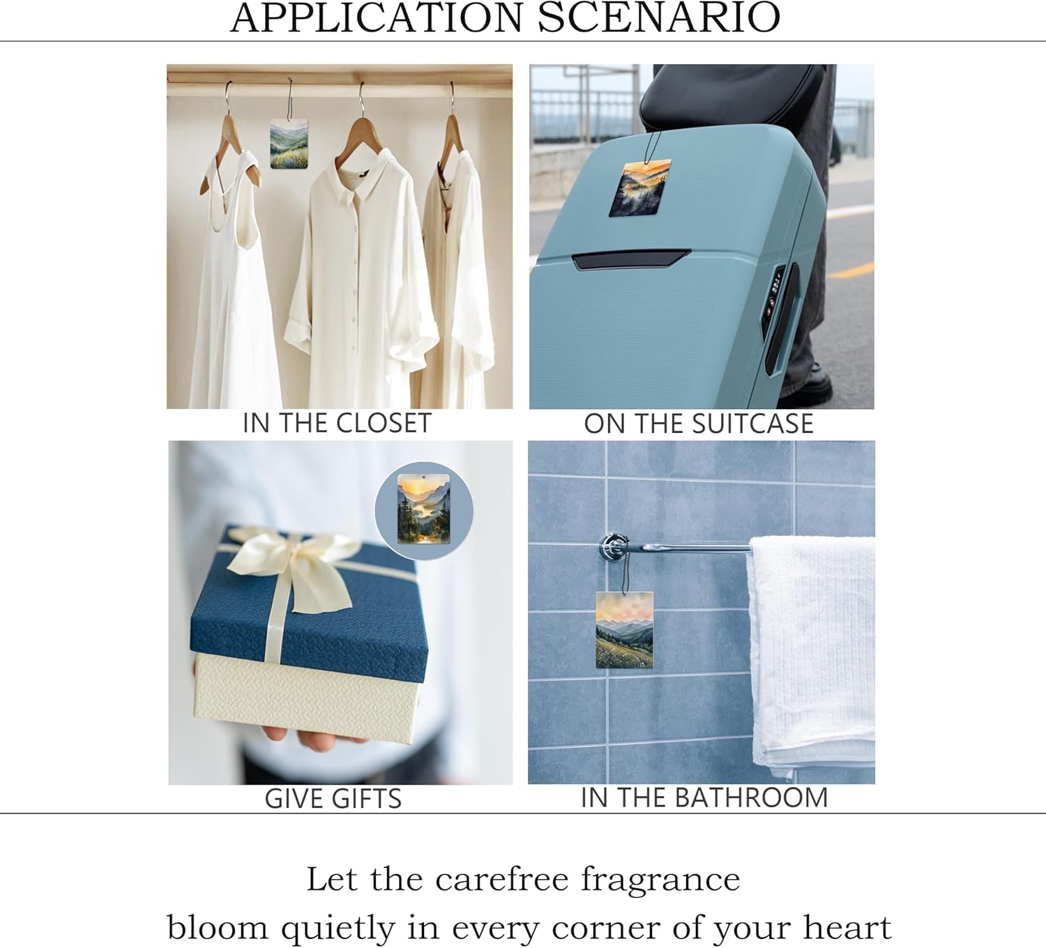 • Versatile Use: Works in vehicles, entryways, wardrobes, restrooms, or home offices - anywhere that could benefit from a small, pleasant scent.