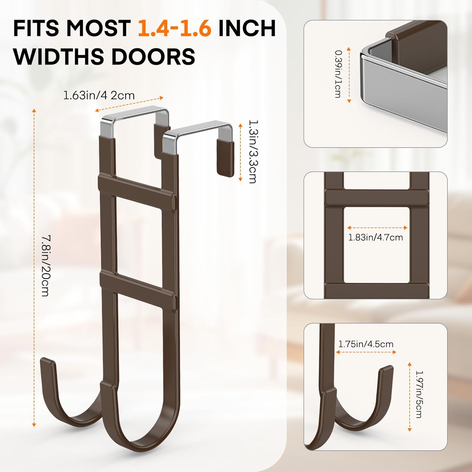 • Size: This over the door hanger hooks length 7.8 inch, groove width 1.63 inch, fit most of doors which widths range of 1.4-1.6 inches. Please measure your door before purchasing