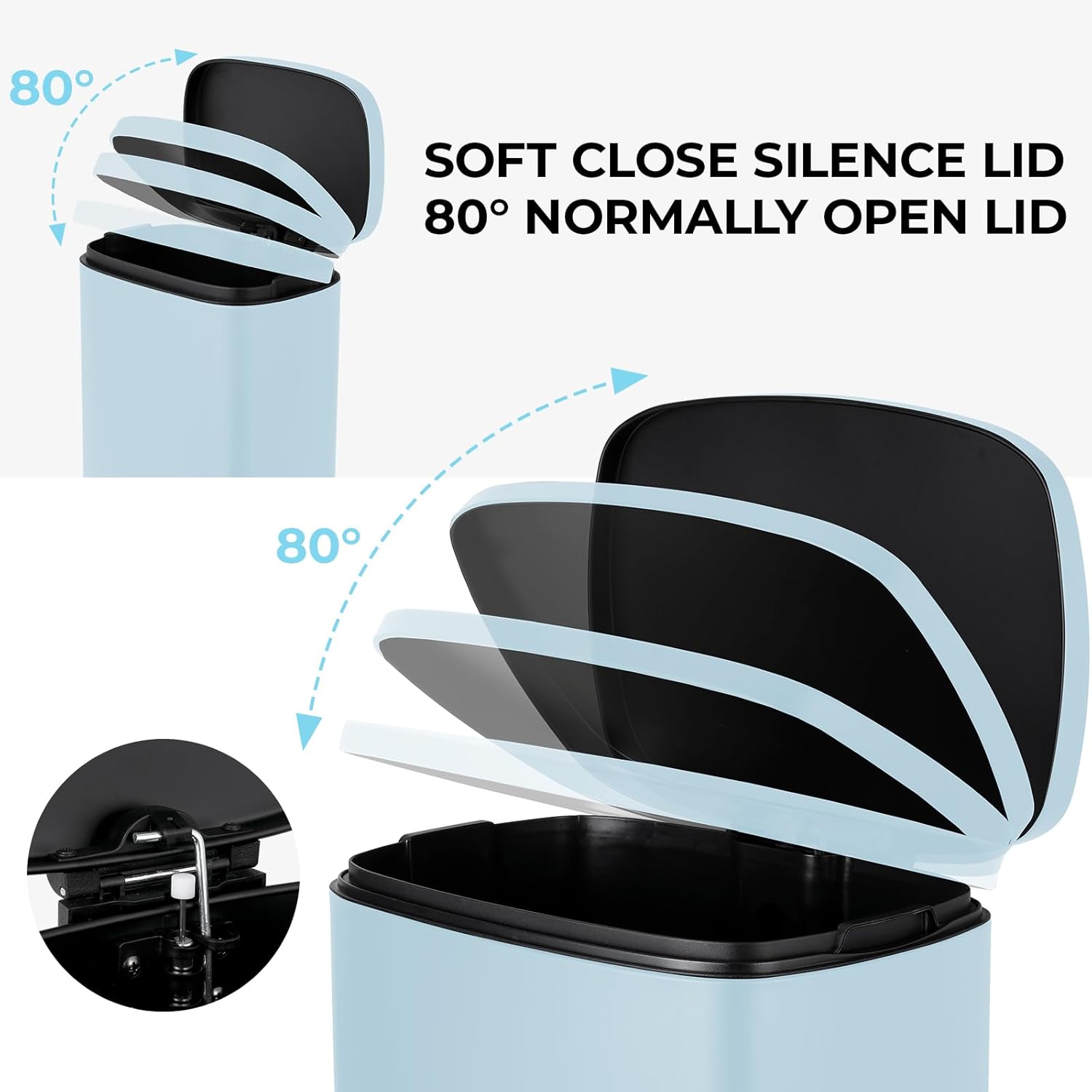 • Quiet Closing&Lid-lock: Heavy-duty garbage can is built with integrated step pedal mechanism and the force damper, which soft open and close lid while preventing slamming and banging. Lid-lock can help keep trash can open without stepping if you are inconvenient to keep stepping on pedal.