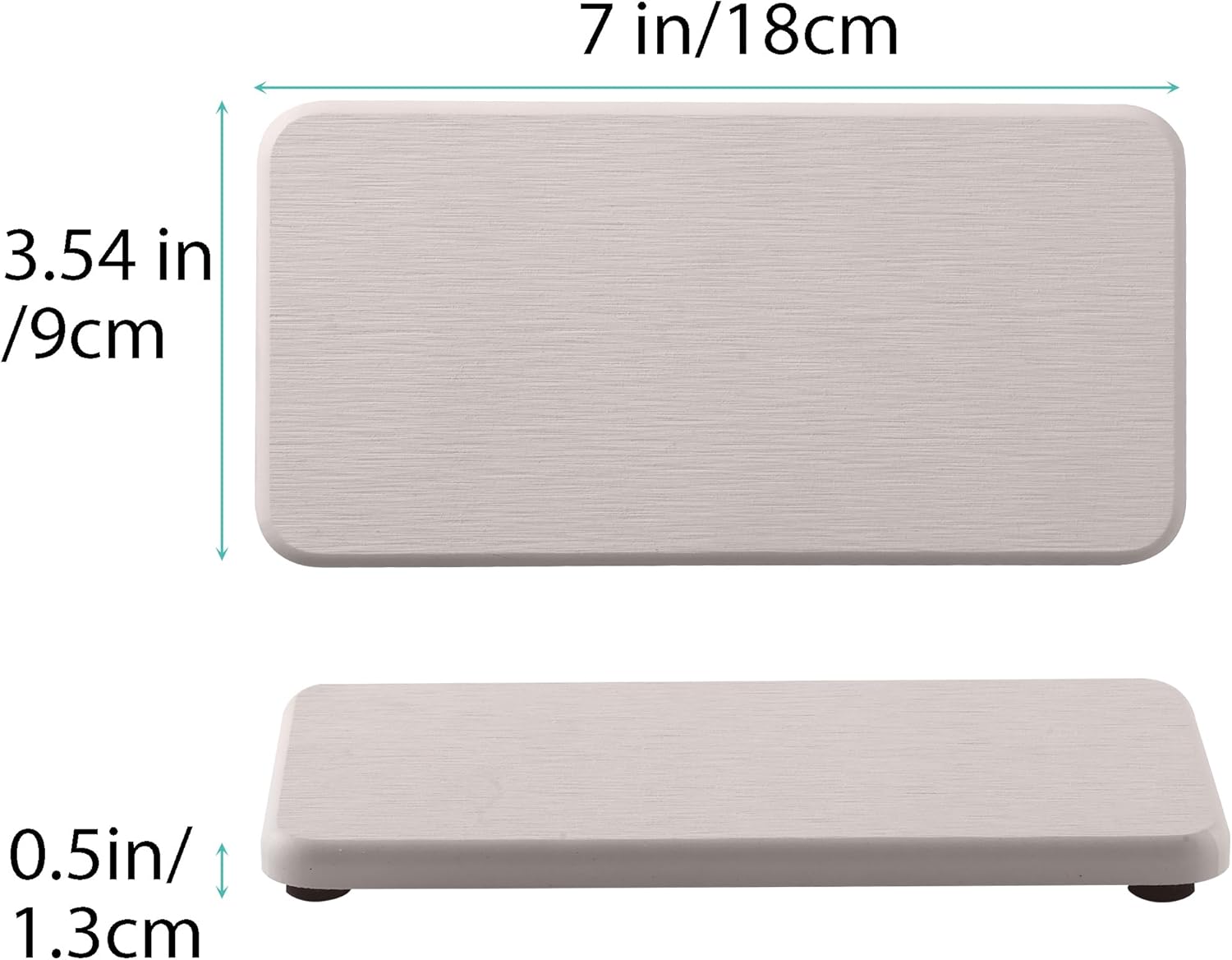 2 Pcs Water Absorbing Stone Trays, Kitchen/Bathroom Sink Soap Dish, Diatomite Tray Used for Hand Soap & Cosmetic Bottles in The Modern Home, 3.5" W x 7.1" L, White