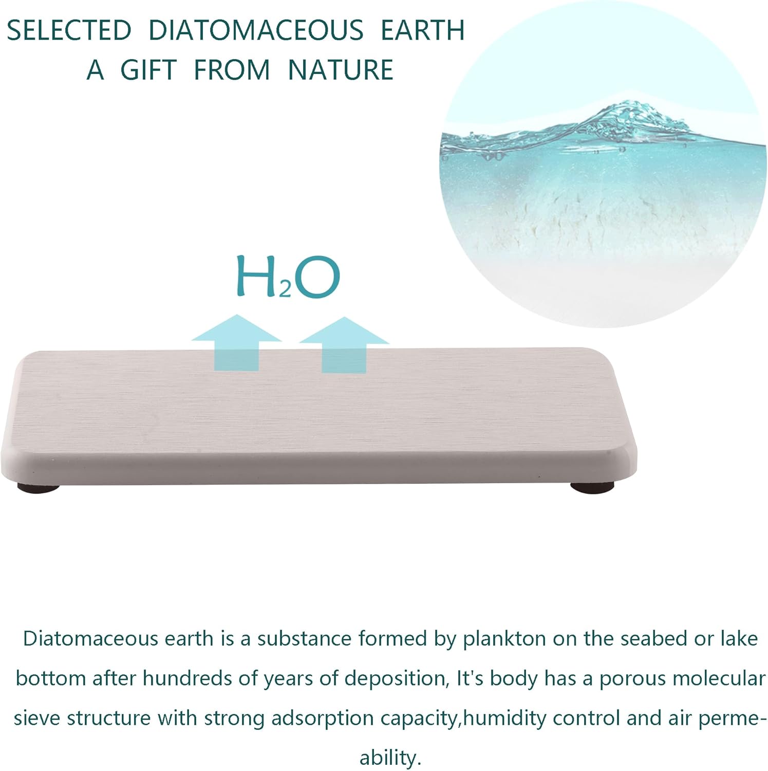 • Made from natural Diatom mud and plant fiber, small holes within diatomite enable it have amazing water absorption. They could absorb water and gets dry in a few minutes. It makes the Bathroom Counter top more dry and tidy.