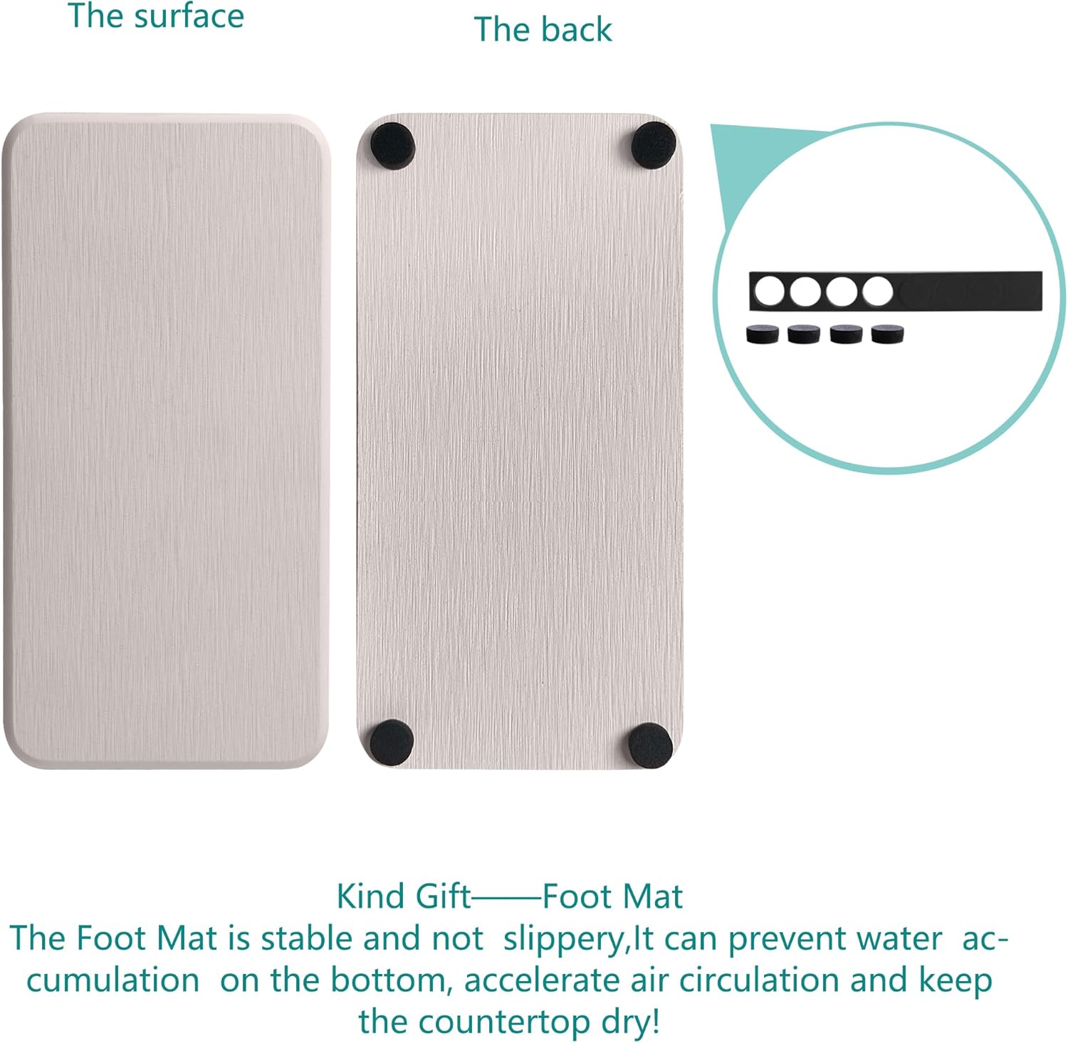 • Silicone footpads boost the slip-resistance of coasters while keeping them out of the bathroom vanity. This design improves the contact surface between the diatomaceous earth coaster and the air, accelerate moisture evaporation, and prolongs the service life of the product.