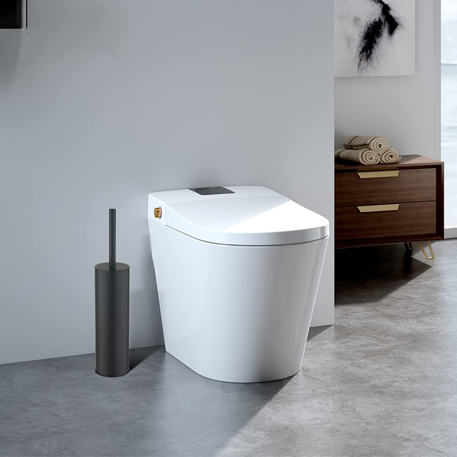 • 4. Closed Design with Non-Slip Base - The sealed holder keeps the brush hidden when not in use, preventing odors from spreading. A black non-slip ring at the base ensures stability and protects tiles from scratches.