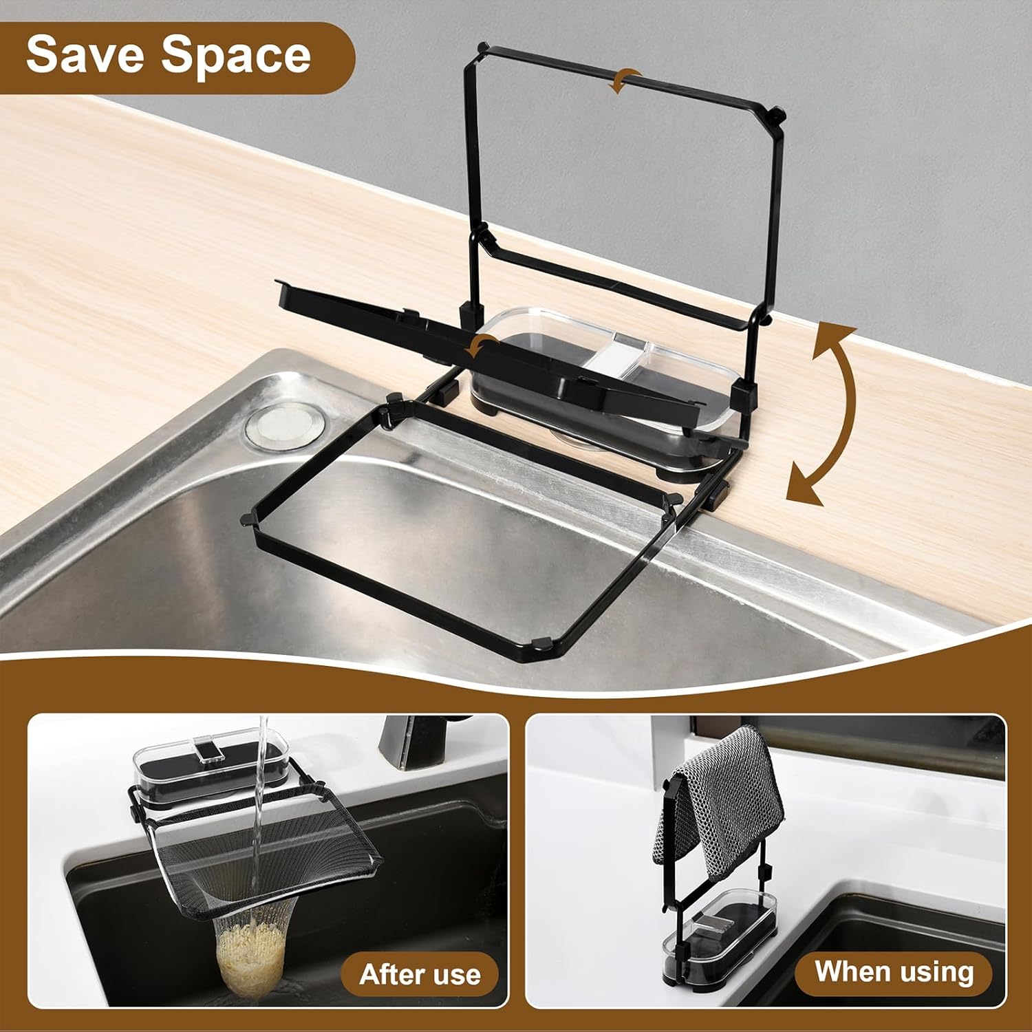 • 3.Space-Saving & Multi-Functional Design:Features a versatile design that rotates 90° to stand upright as a towel/dish rack or folds compactly when not in use. kitchen sink garbage strainer as a drain rack for fruits, veggies, and dishes.