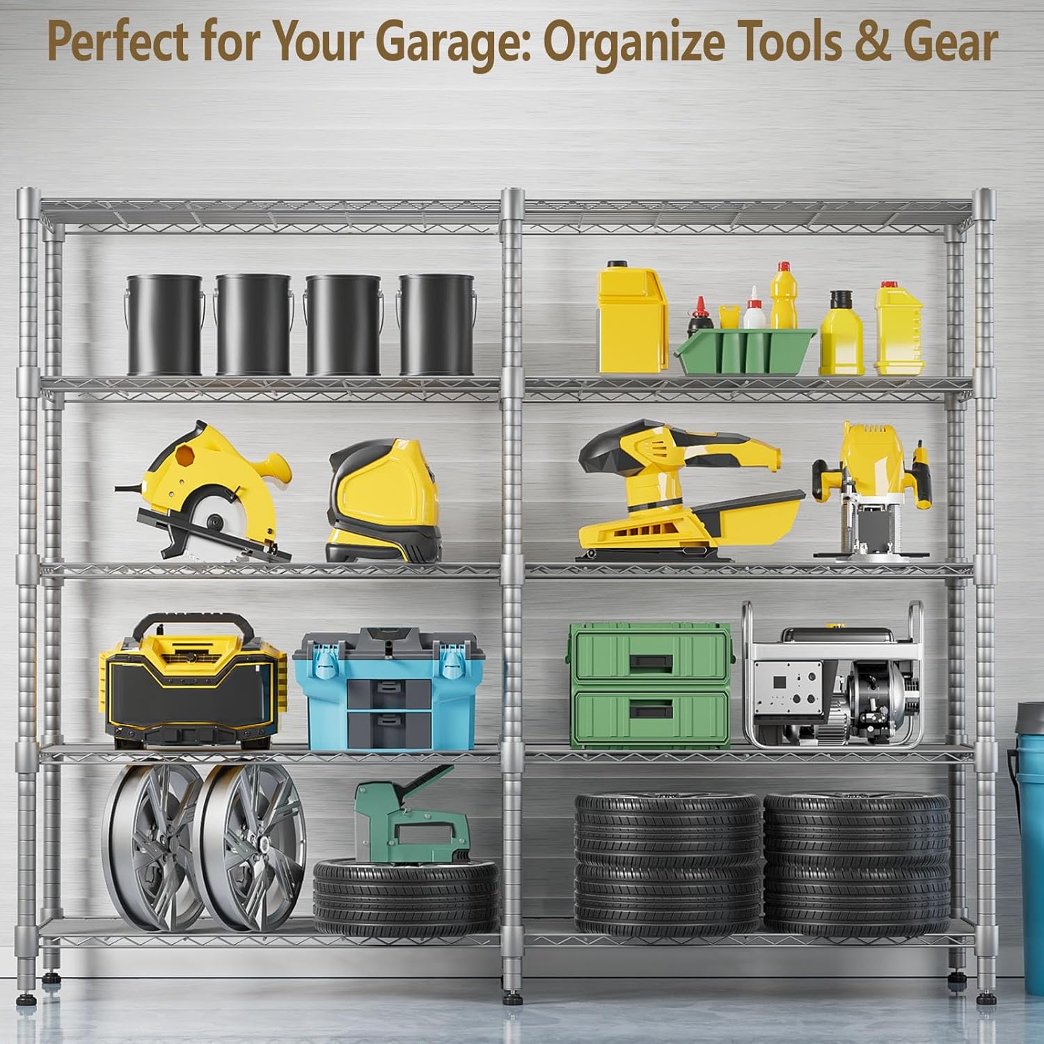 - Special Feature : Heavy Duty, Adjustable, 5 Tier Wire Shelving Unit, Metal Shelving, Leveling/Corner Mounting, Space Saving Heavy Duty, Adjustable, 5 Tier Wire Shelving Unit, Metal Shelving, Leveling/Corner Mounting, Space Saving