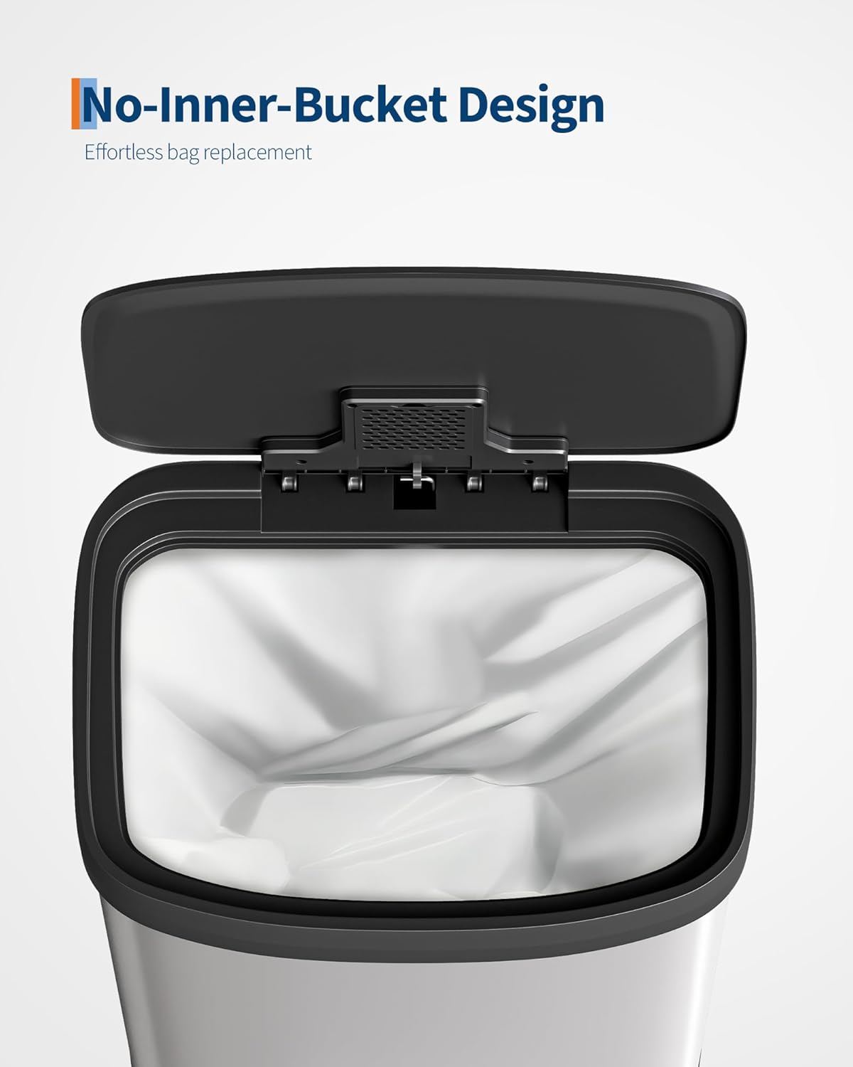 • Integrated Liner Rim and Stability: The built-in liner rim conceals bag edges for a clean look while securely holding bags in place. Anti-slip rubber feet keep the bin stable on various floor types including tile, hardwood, and low-pile carpet.