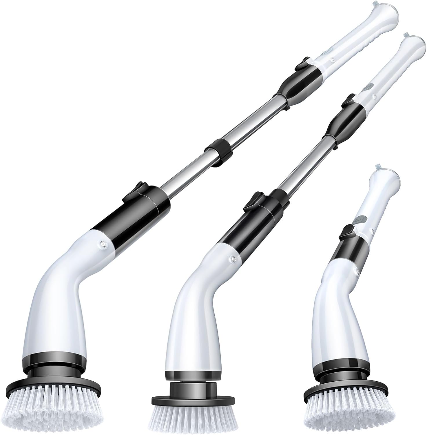 - Extendable Rod: The electric bathroom scrubber is equipped with a detachable and retractable metal extension rod, allowing easy access to tight corners and high spots, making cleaning under furniture, around faucets, and in ceiling corners a breeze
