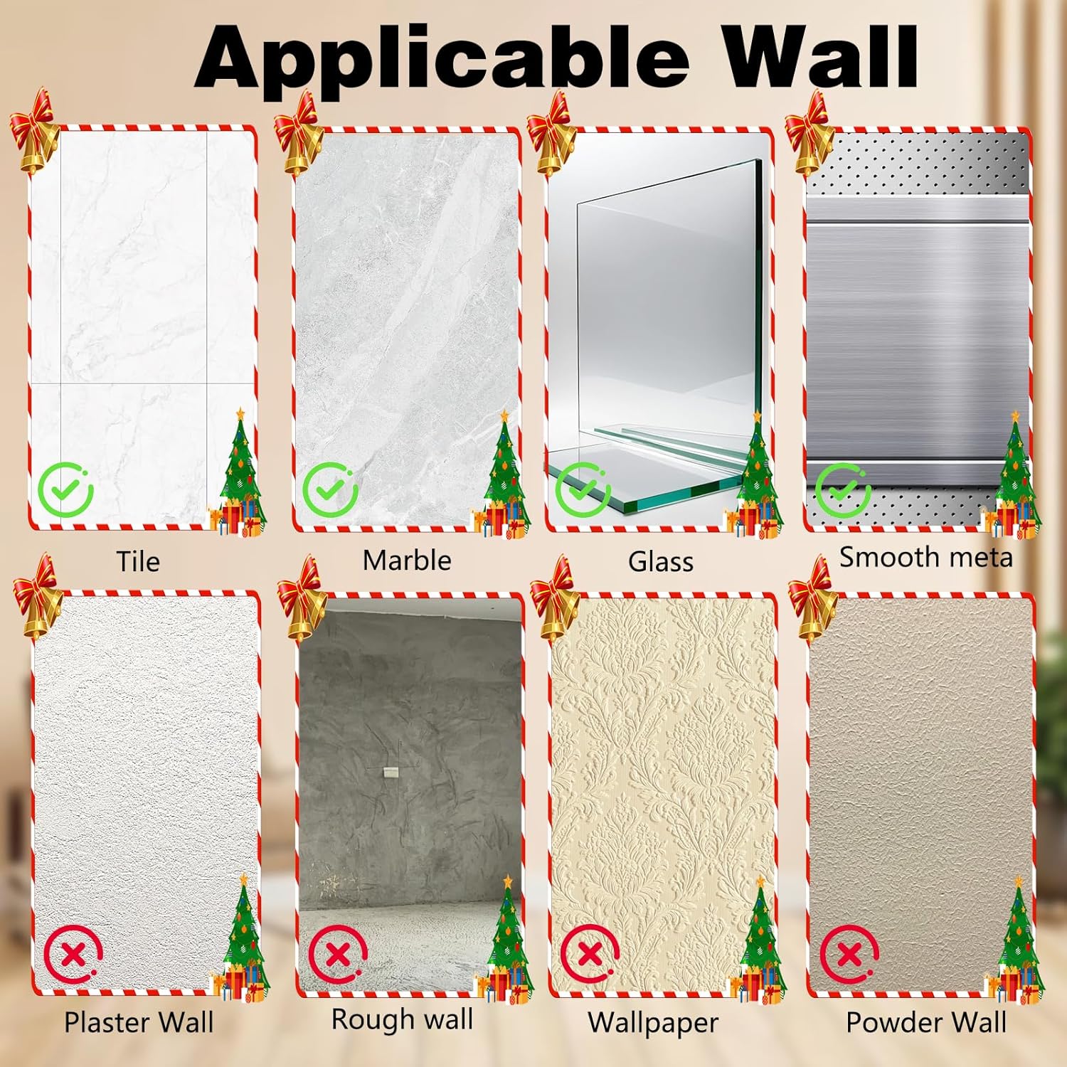 • [Multi-Purpose Hooks] These suction cup hooks are perfect for bathrooms, kitchens, bedrooms, and holiday decorations, whether you need a wreath hook for a door frame or a stylish seasonal wreath hook for your door. They adhere securely to glass, tile, mirrors, and other non-porous surfaces