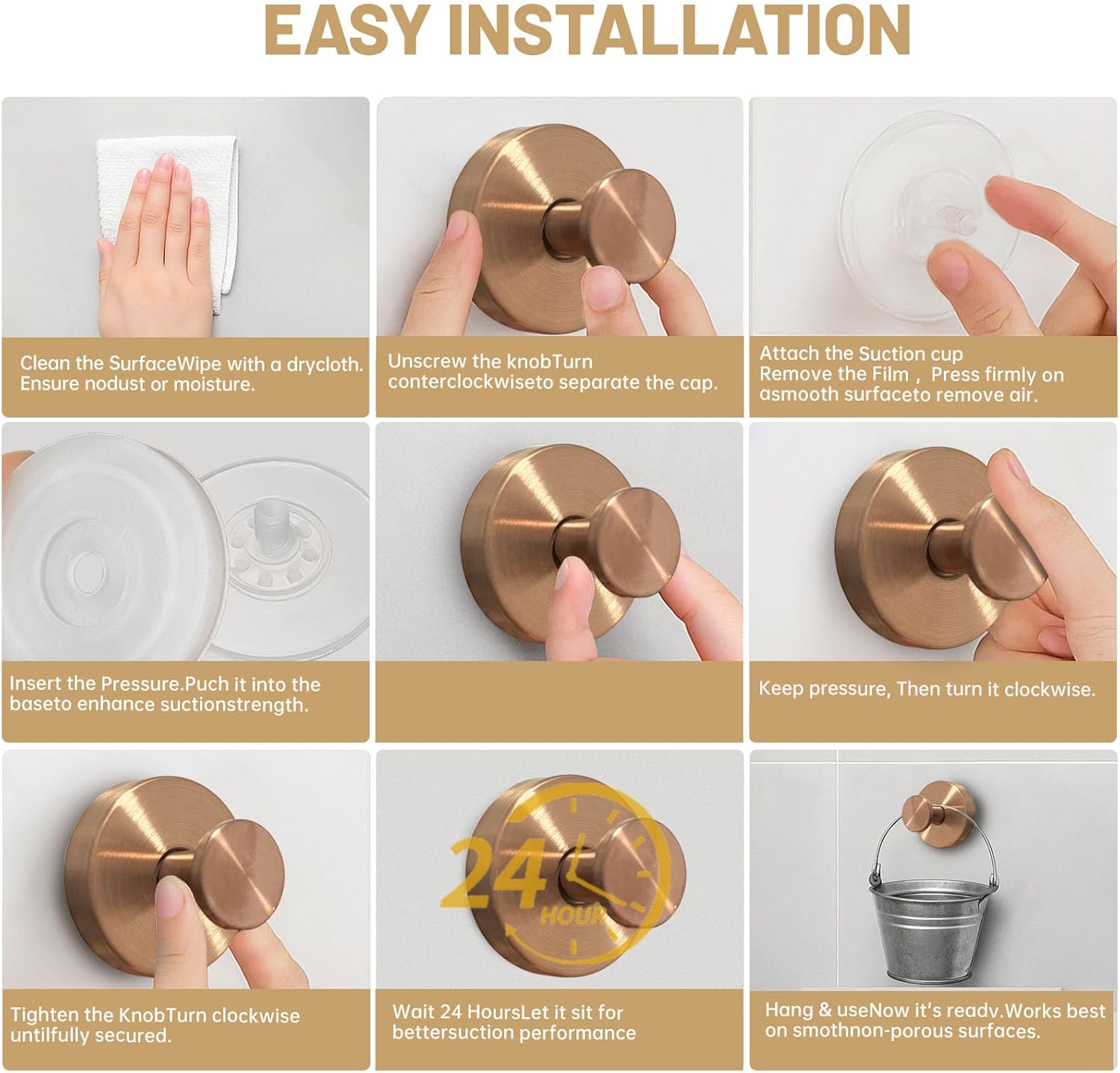4pcs Suction Cup Hooks for Shower,Shower Towel Suction Hooks,No Drill Towel Hooks for Bathroom Wall,Kitchen,Glass,Mirror,Tile to Hang Towels,Robes,Loofah (Rose Gold)