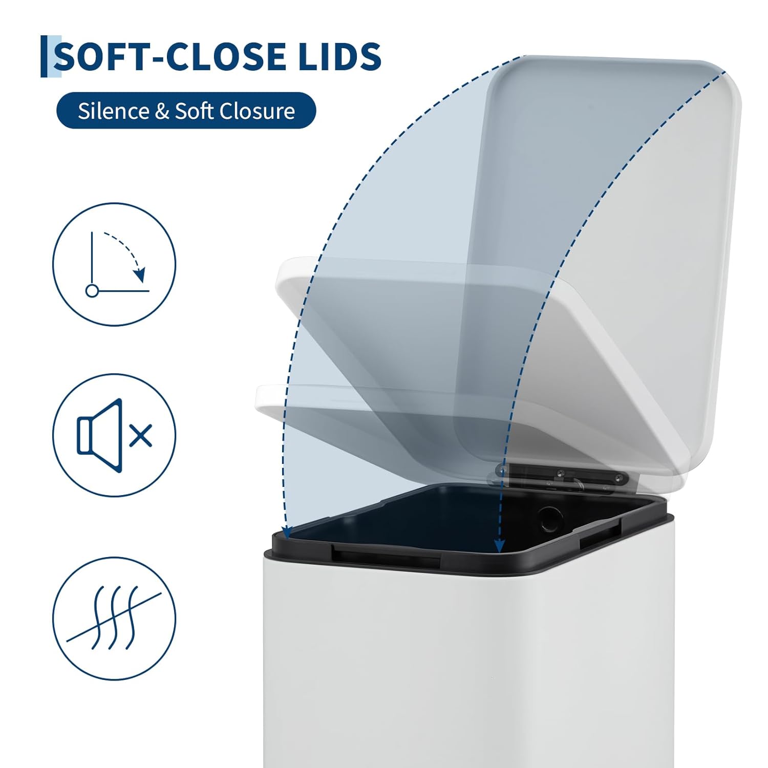 • 【Silent Soft-Close Lid】The slow-closing lid prevents loud slams—perfect for late-night cleanup in kitchens or bathrooms. Enjoy a quieter home while keeping odors contained.