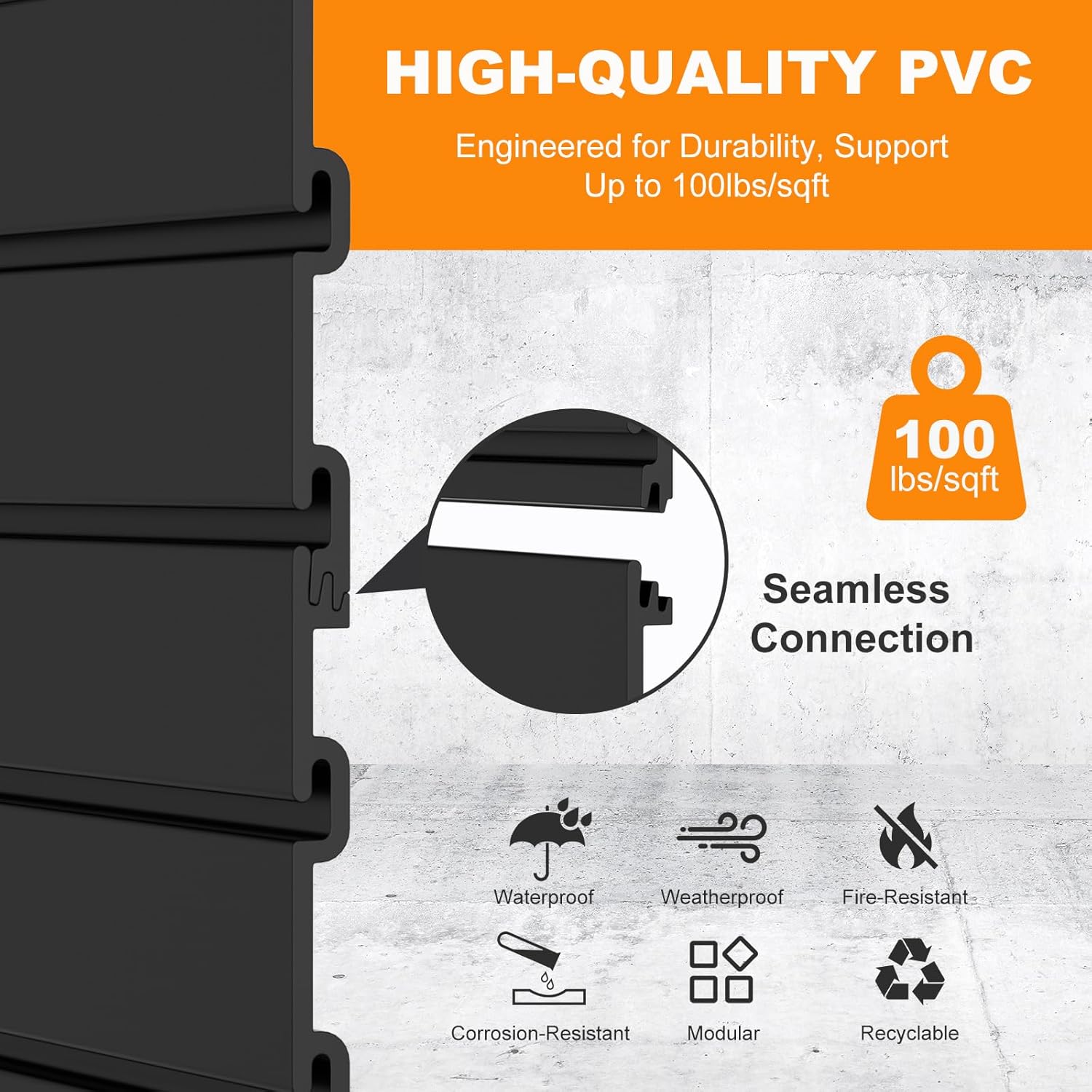 DoCred Slatwall Paneling Organizer, 4x4 FT PVC Garage Slat Wall Storage Systems, Heavy Duty Mounted Slat Peg Board for Tool Organization Ladder Bike Includes 20 PCS Hooks Accessories Kit (Black)