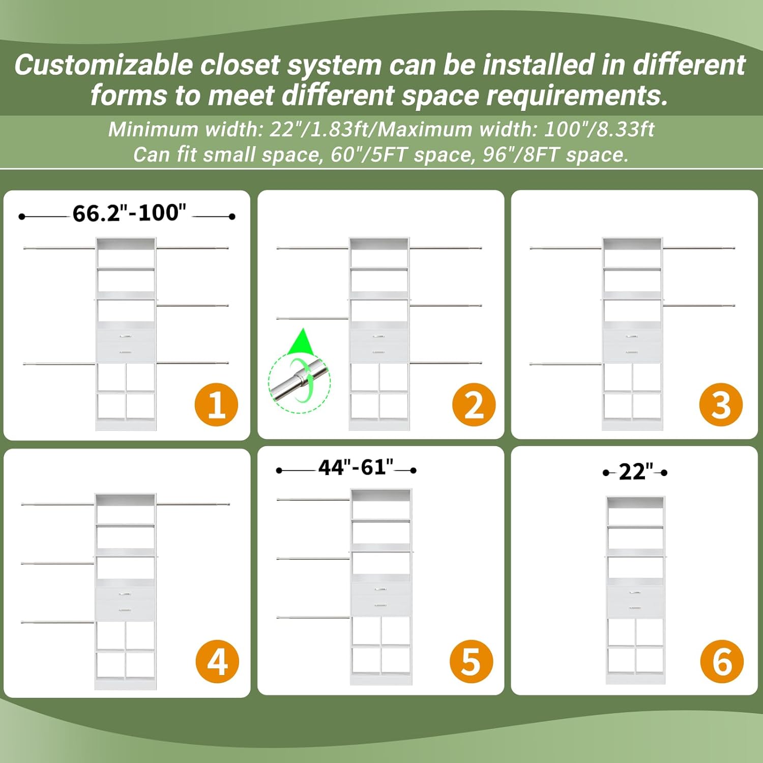 - 【Compatible with 5FT/8FT Closet Spaces】Whether for a compact 5FT area or a spacious 8FT walk-in closet, this organizer fits seamlessly. Anti-tip kits are included for added safety and peace of mind