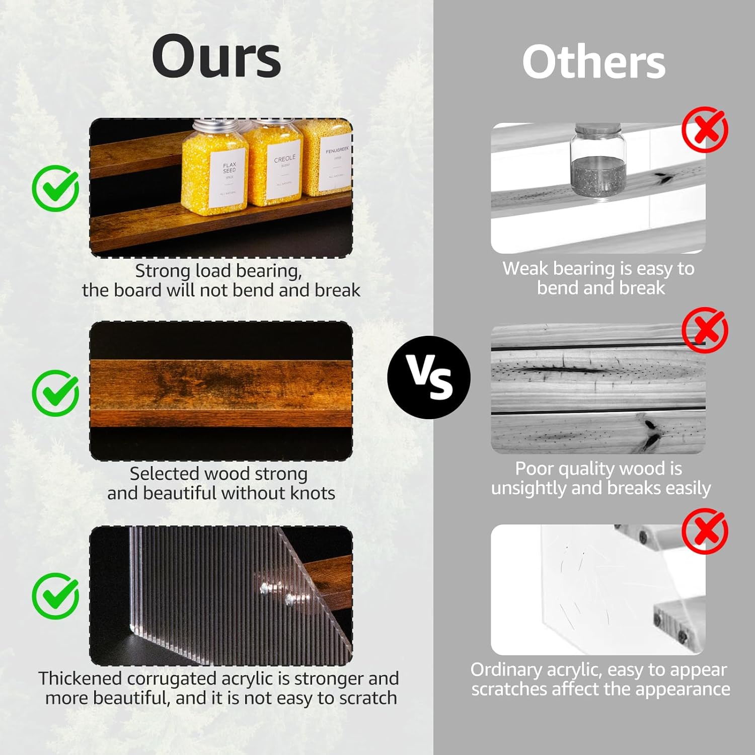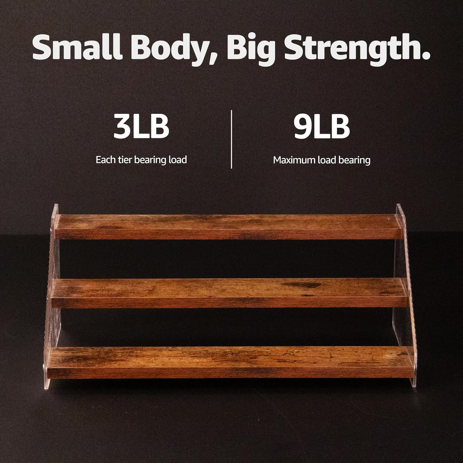 • Elegant & Sturdy: Risers display stands constructed from high-quality pine wood and corrugated acrylic, making it both aesthetically pleasing and fashionable, as well as durable and resistant to deformation, the spice shelf is a beautiful and robust addition to any space