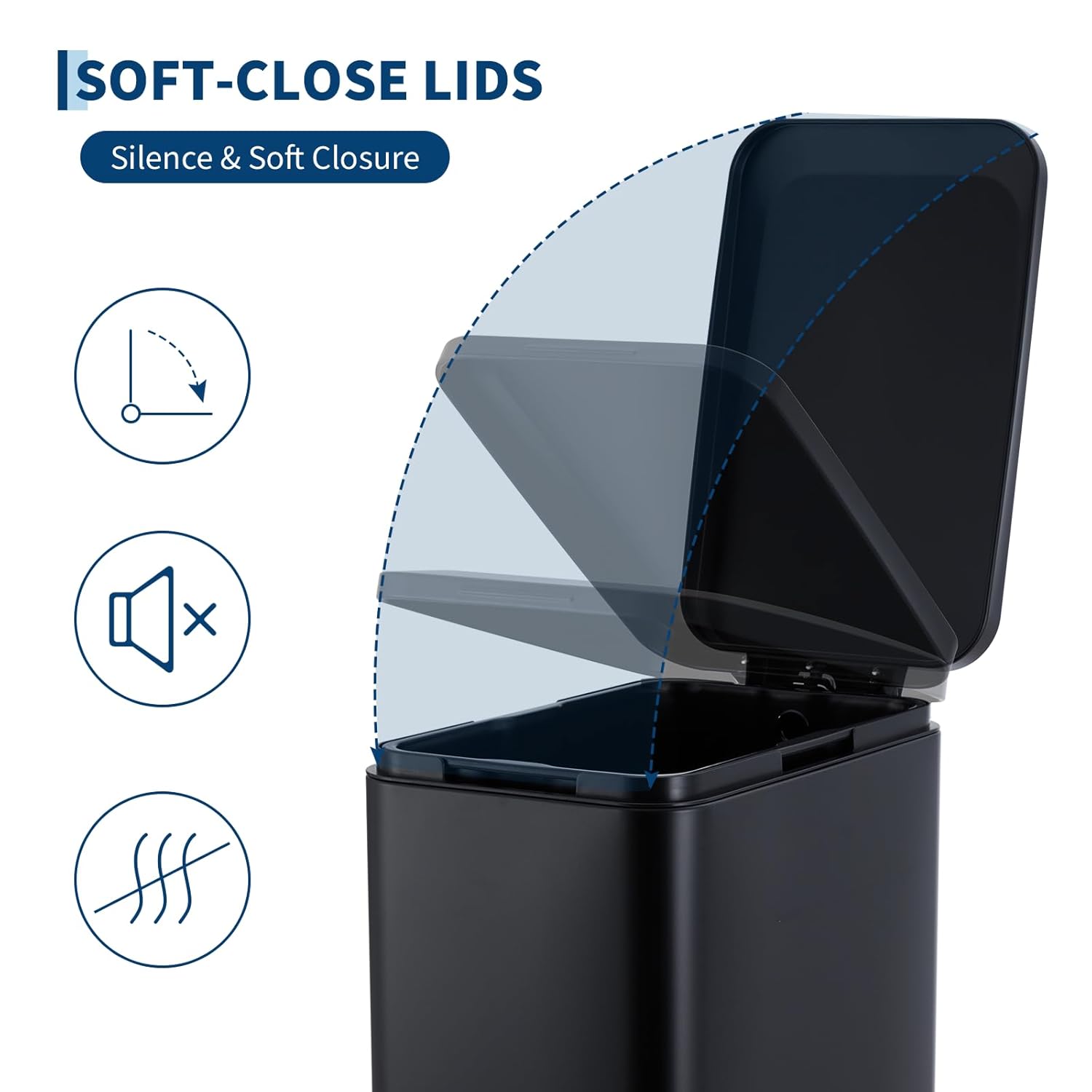 • 【Silent Soft-Close Lid】The slow-closing lid prevents loud slams—perfect for late-night cleanup in kitchens or bathrooms. Enjoy a quieter home while keeping odors contained.