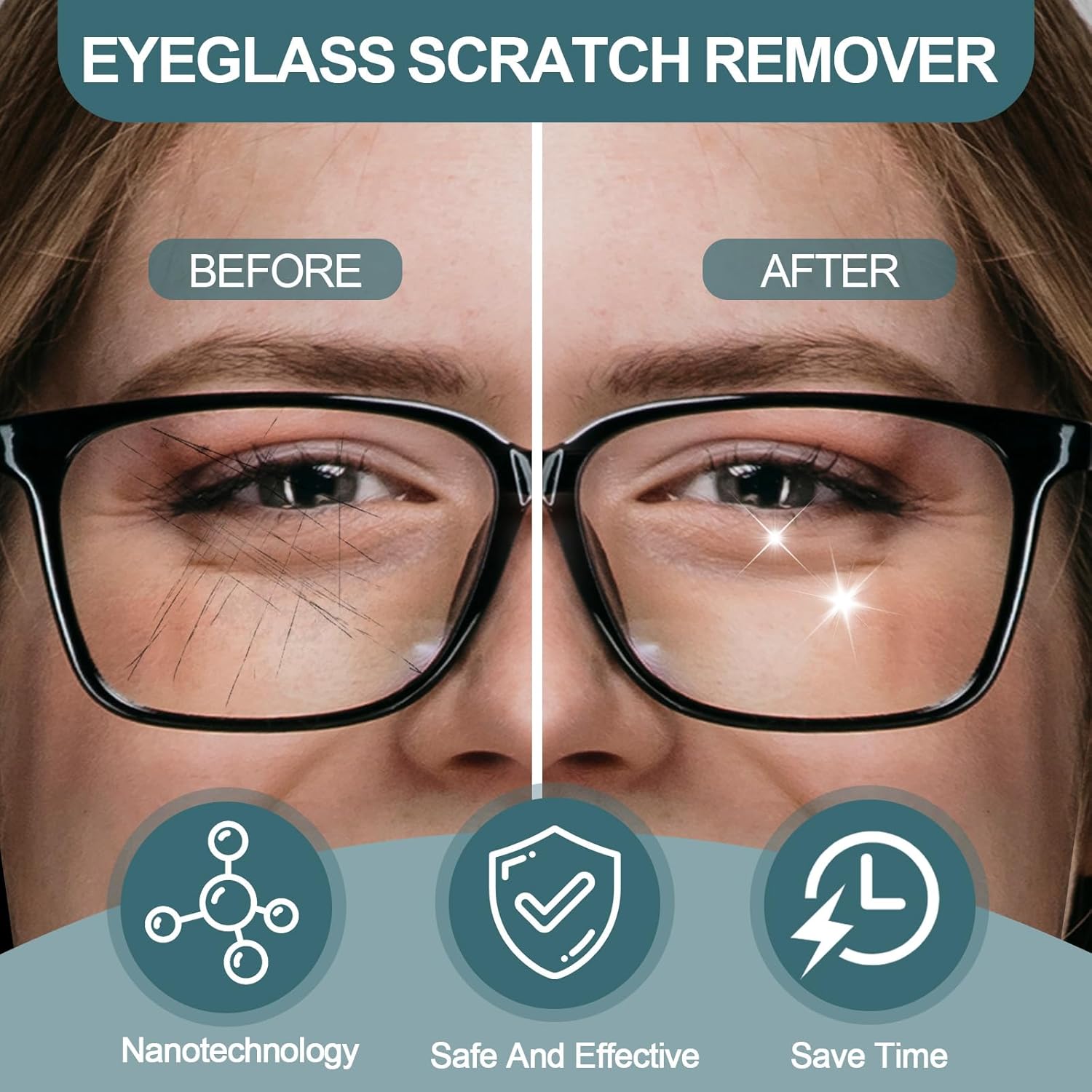 • Effective Glasses Scratch Remover: Our eyeglass scratch repair spray is specially formulated to effectively eliminate scratches on eyeglasses, sunglasses, and screens.