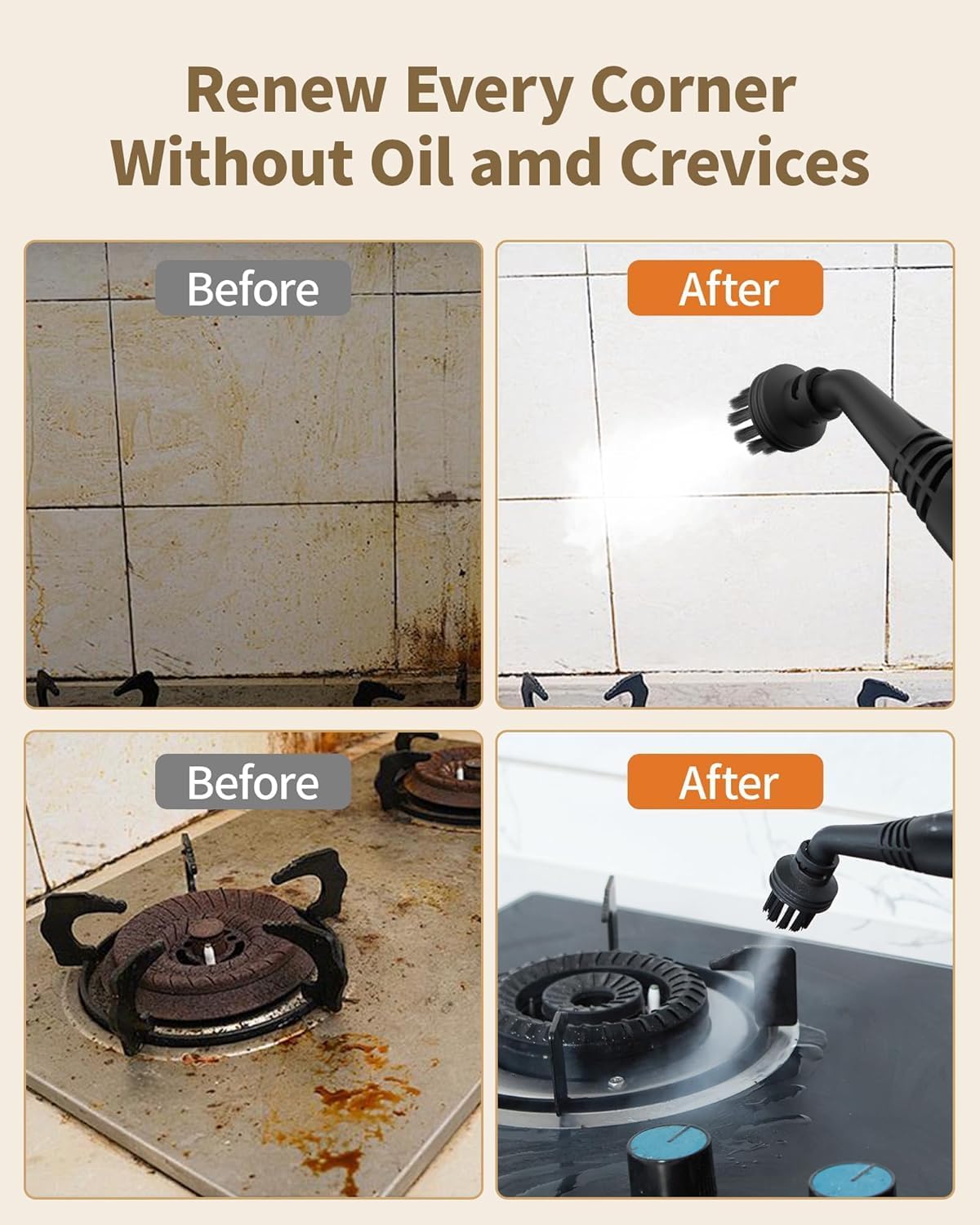 • 【Fast Heating & Efficient Steam Cleaning】Preheats in 4-6 minutes after a refill, the multipurpose steam cleaner for car and carpet and upholstery heats up rapidly to 293°F and delivers powerful hot steam with 4bar steam pressure to deep clean grease and grime in crevices