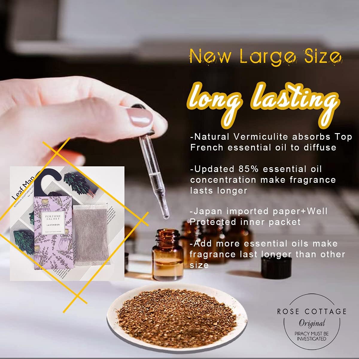 • [Safe Material Made Every Breath Have A Guarantee]Made of top Essential oil created by french professional perfumers.You must haven't smell such unique pure and fresh fragrance .This large size sachets add more essential oils than the small size,making room fresheners dissipates well while lasts longer.You can absolutely trust that they are also great as shoe odor eliminator and trash can deodorizer, keeping your every breath fresh and safe!